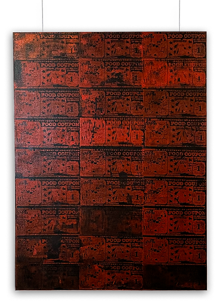 27 Food Stamps, Acrylic on canvas, Black on red, 30 x 40 in